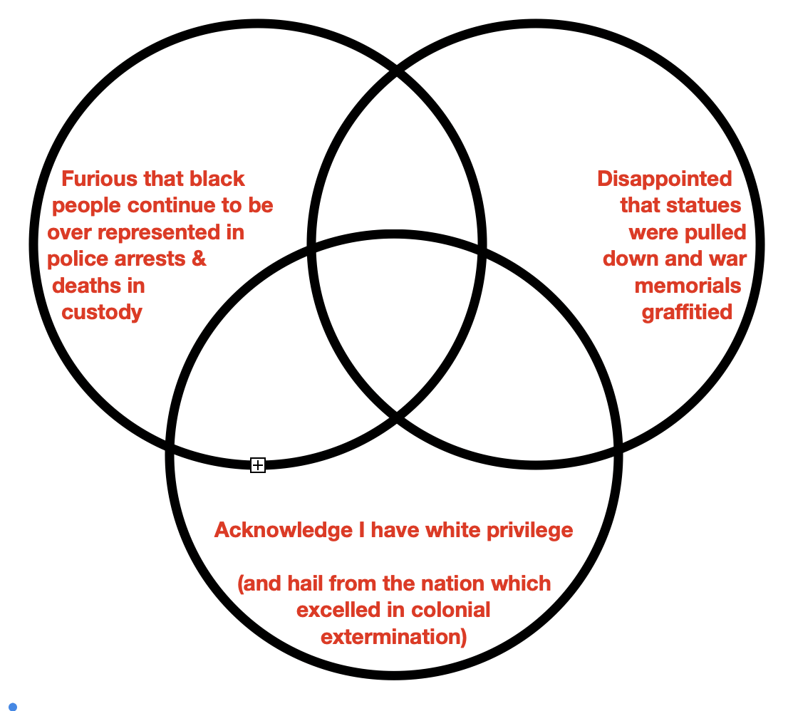 Travelling in the van means not only do we get to do a lot of looking out the window but also plenty of time to think through thorny issues and knotty conundrums. In recent weeks my thoughts have often come round to world events such as the Black Lives Matter protests and I have felt myself pulled in different directions. My internal Venn diagram would look a bit like this: